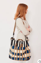Handwoven linen tote bag made by Epice Paris. Check pattern printed in soft hues and earthy tones. Handwoven short handles, removable shoulder strap, adjusted to the colorways. Fully lined with matching cotton fabric. Single snap button closure. Interior and exterior zippered pockets. Leather protective corners. Elegant, versatile, for men and women tote, carried in hand or over the shoulder. Hand screen printing.