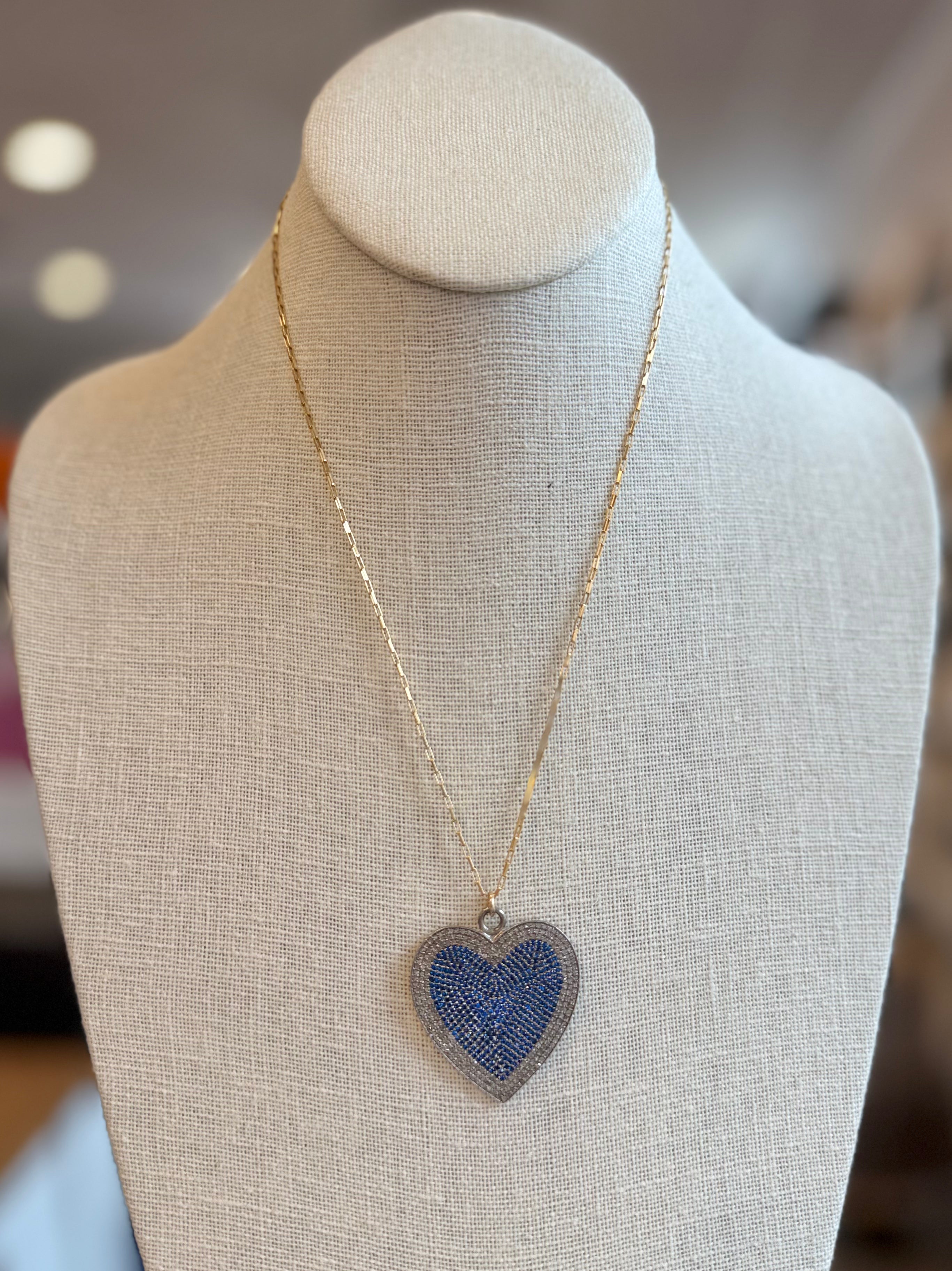 Sapphire and Diamond Heart Necklace